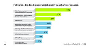 Doch selbst eingefleischte Online-Käufer zieht es zu bestimmten Gelegenheiten in den Laden: 60 Prozent lassen sich von Sonderverkäufen locken, 39 Prozent suchen Geschäfte im Urlaub auf und 37 Prozent shoppen Geschenke. Für 29 Prozent ist der Ladenbummel zudem ein Gemeinschaftserlebnis mit Freunden und Familie. Besonders junge Leute mögen außerdem Unterhaltung und Events im stationären Handel. Aber auch in Sachen Beratung und Vertrauen liegt der stationäre Handel vorn. Guter Kundenservice ist für die Hälfte (51 Prozent) wichtig, 37 Prozent schätzen Produktproben.