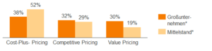 die Zuschlagskalkulation (Cost-Plus) während Großunternehmen deutlich mehr auf professionelle Ansätze wie das Value Pricing setzen. Dies spiegelt sich im Tagesgeschäft in operativen Maßnahmen wie